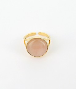 Bague en acier doré à l'or fin sertie d'un gros cabochon de pierre fine. La monture de cette bague est assez fine afin de bien mettre en valeur la pierre.