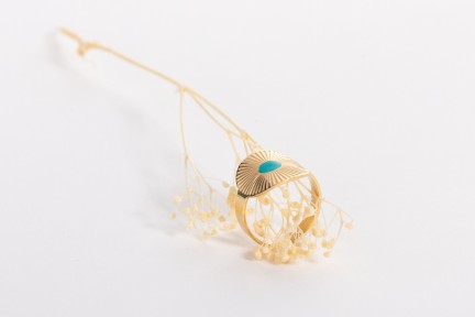 Cette bague plaqué or aux détails gravés et émaillés donnera l'élégante touche finale à une tenue.