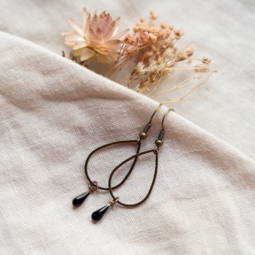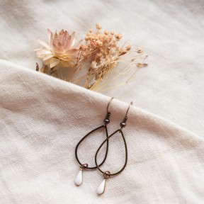 Très jolies boucles pendantes en laiton avec une pièce en résigne epoxy. Ces boucles sont des créations originales Lulubel, réalisées avec soin dans notre boutique-atelier Matériaux : laiton, résigne epoxy Dimensions : 5,5 x 1,5 cm