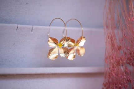 Matériaux : créoles en acier doré et pièce principale en laiton doré à l'or fin.