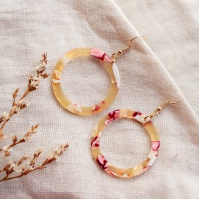 Très jolies créoles pendantes en laiton doré à l'or fin avec une grande Pièce en acétate translucide.