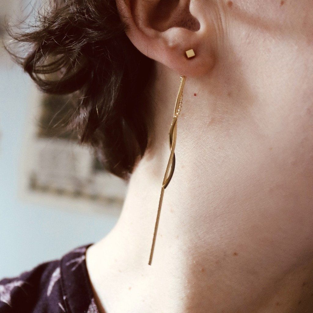Boucles Lina, sur clous, en acier inoxydable doré à l'or fin Dimensions : long 8 cm Matière: acier inoxydable doré à l'or fin Création originale Zag Bijoux