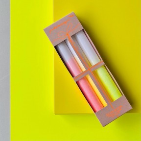 Set de trois bougies teintées à la main avec amour, au look scintillant. Grâce au travail manuel, chaque bougie est une pièce unique. Paraffine soigneusement sélectionnée et produite dans la région de Bavière (Allemagne).