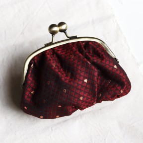 Ces bourses à la fermeture vintage en métal vous permettront de ranger maquillage ou monnaie sans problème ! Tissu à motif coeur et petits coeurs en fils métallisés rose. Doublure intérieure couleur nude.