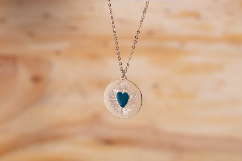 Bracelet Firenze, acier inoxydable et email. Magnifique collection avec un beau travail de gravure dans l'acier et cette touche d'émail en forme de coeur. On adore !