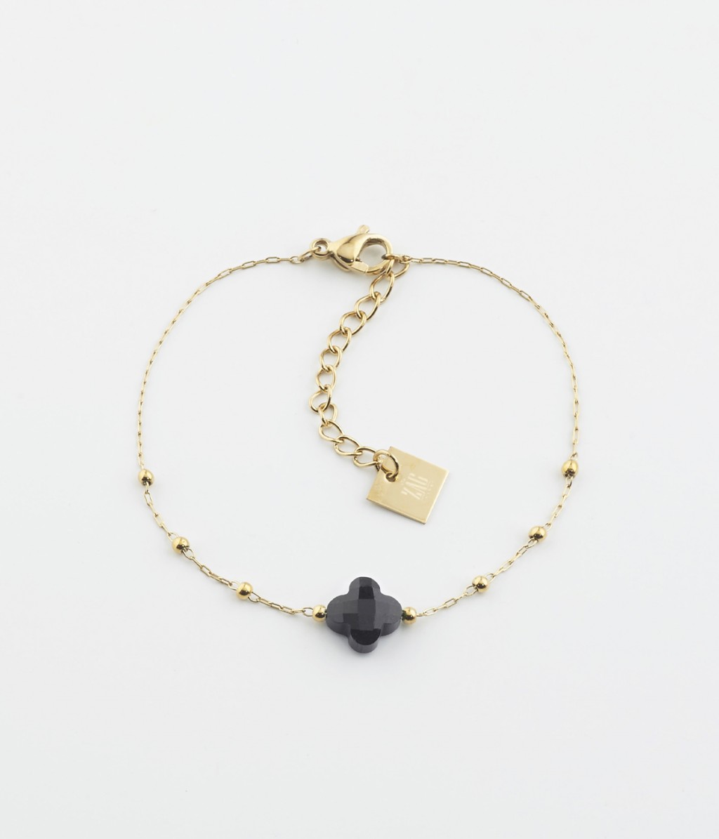 Bracelet chaîne 'chapeletâ? sur lequel est attachée une pierre semi-précieuse facettée en forme de trèfle.