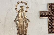 Petit photophore en porcelaine et forme de visage, yeux ouverts d'un coté et yeux fermés de l'autre. La porcelaine est émaillée à l'intérieur et mate à l'extérieur. Bougie non fournie.