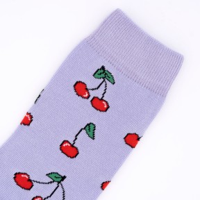 D'adorables chaussettes mauves couvertes de petites cerises trop choux pour un look estival et coloré !