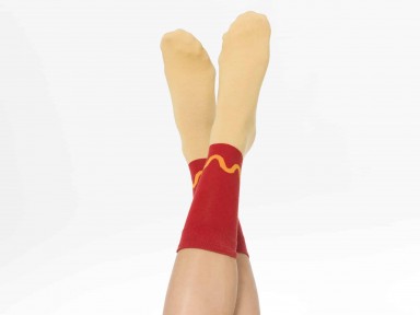 Chaussettes DOIY drôles et confortables, packaging en forme de part de hotdog ! Matière : 65,5 % coton, 30,3 % polyester, 2,7 % elastane, 1,5 % Nylon Taille unique.