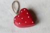Coeurs en bois à suspendre, pour Noël ou toute l'année. Fabriqués en bois de manguier avec une ficelle pour suspendre. Petits pois blancs peints.