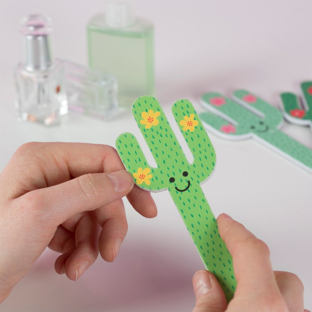 Lime à  ongles en forme de cactus double-face avec un dessin au recto et un verso noir, un accessoire de beauté fun à  emporter partout !
