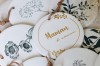 Médaillon céramique rond à  accrocher. Sérigraphie encre terracotta, cordon doré.