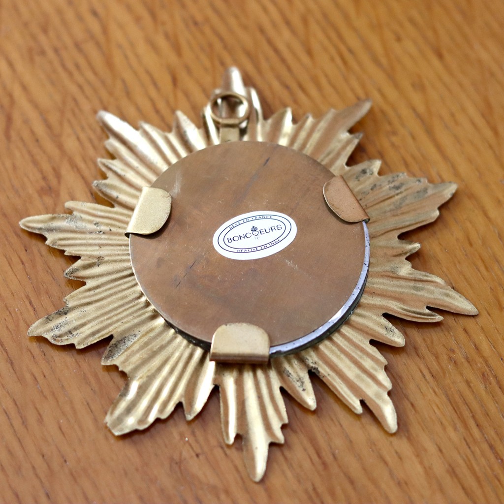 Ce petit miroir Soleil viendra illuminer vos murs. Il trouvera sa place dans toutes les pièces de la maison et marquera peut-être le début d'une collection d'ex-votos. Ce produit de fabrication artisanale peut être sujet à de légères variations de formes et coloris des patines. Chaque pièce est unique !