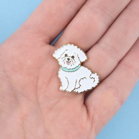 Un pin's Bichon tout frisé, blanc comme neige ! On fond pour son mini sourire et sa petite langue tirée toute rose, sans oublier le joli collier turquoise qui le rend encore plus craquant. é accompagner de son copain Caniche pour toujours plus de petits nuages canins sur votre revers de veste !
