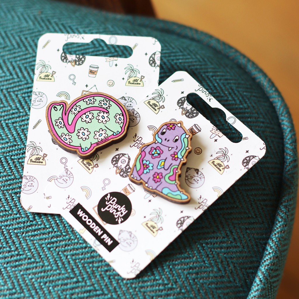 Pin's en bois imprimé avec fermoir en caoutchouc noir. Dinosaure mignon et irrésistible ! Dimensions : 35 x 30 mm Matériaux : bois Design by Cat Lobo Création Punky Pins, la marque joyeuse et positive !