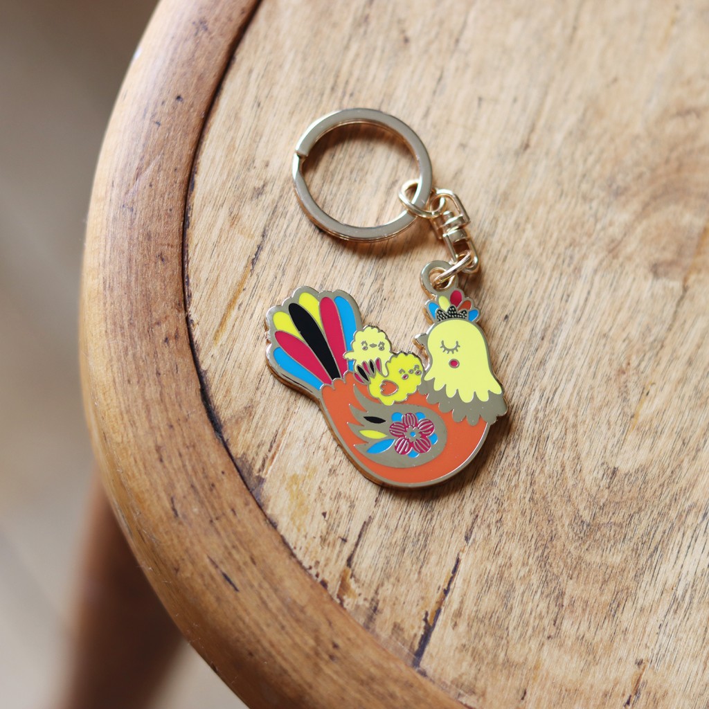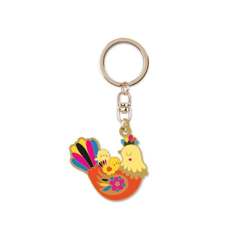 Dans la collection "Maman poule", la nature revisitée par Zabeil devient drôle et colorée. Des animaux et des personnages singuliers pour un univers reconnaissable au premier coup d'oeil. Ses couleurs peps et douces à la fois sont soigneusement choisies et nous plongent dans un rêve en couleurs... Ce porte-clé en métal doré apportera de la fantaisie à votre quotidien !