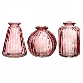 Set de 3 vases en verre 100 % Coloris rose Matière : verre 100 % Dimensions : hauteur env 11 cm / Circonférence env 6 cm à la base Création Sass and belle