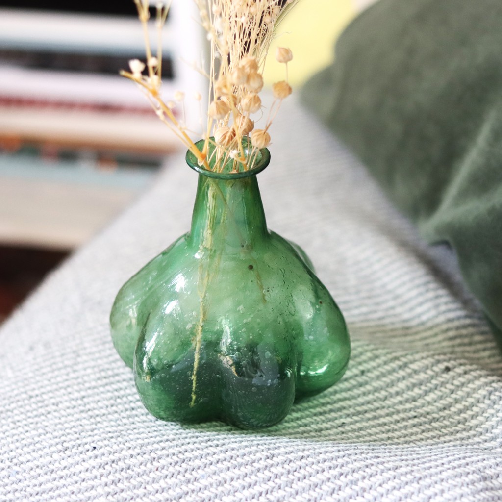 Petit vase en verre recyclé à la forme très originale. Dimensions : 9 x 12 cm Matière : verre recyclé Création Madam Stoltz